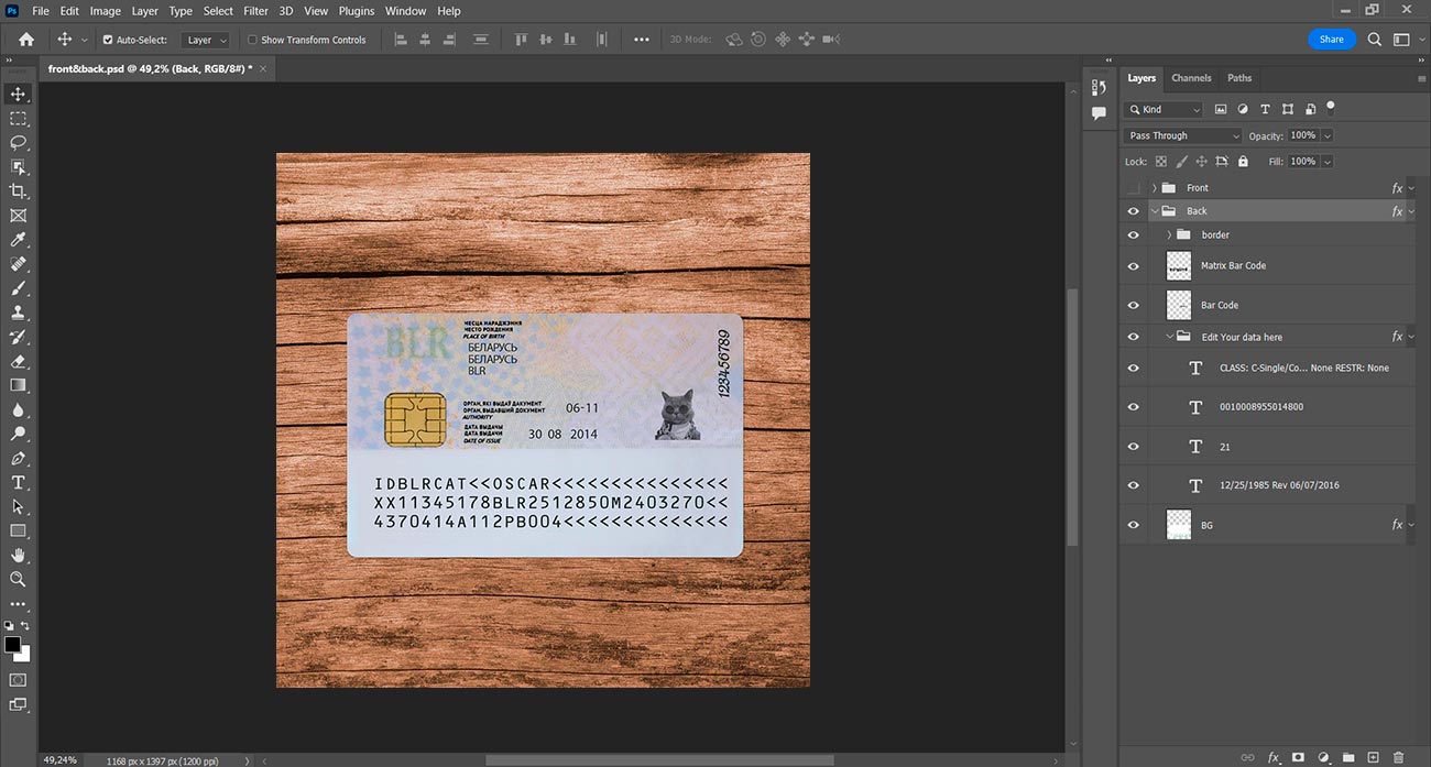 But if you don’t want to waste your time you can order: Create with my info. And you write us the information and send us a photo and we will make for you a high-quality photo with this template but with your information.
