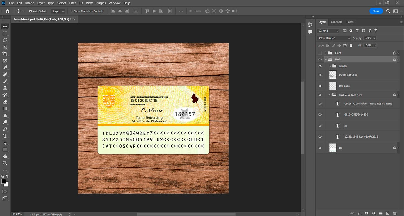 But if you don’t want to waste your time you can order: Create with my info. And you write us the information and send us a photo and we will make for you a high-quality photo with this template but with your information.
