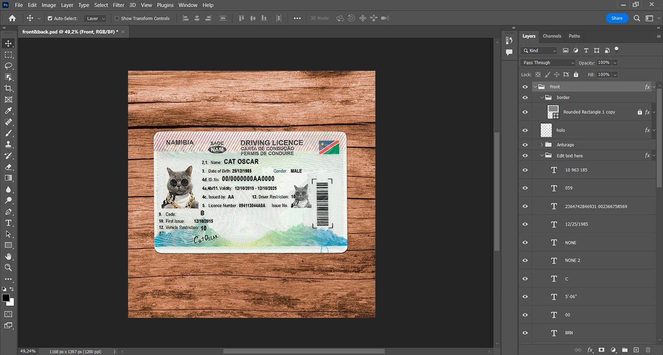 But if you don’t want to waste your time you can order: Create with my info. And you write us the information and send us a photo and we will make for you a high-quality photo with this template but with your information.