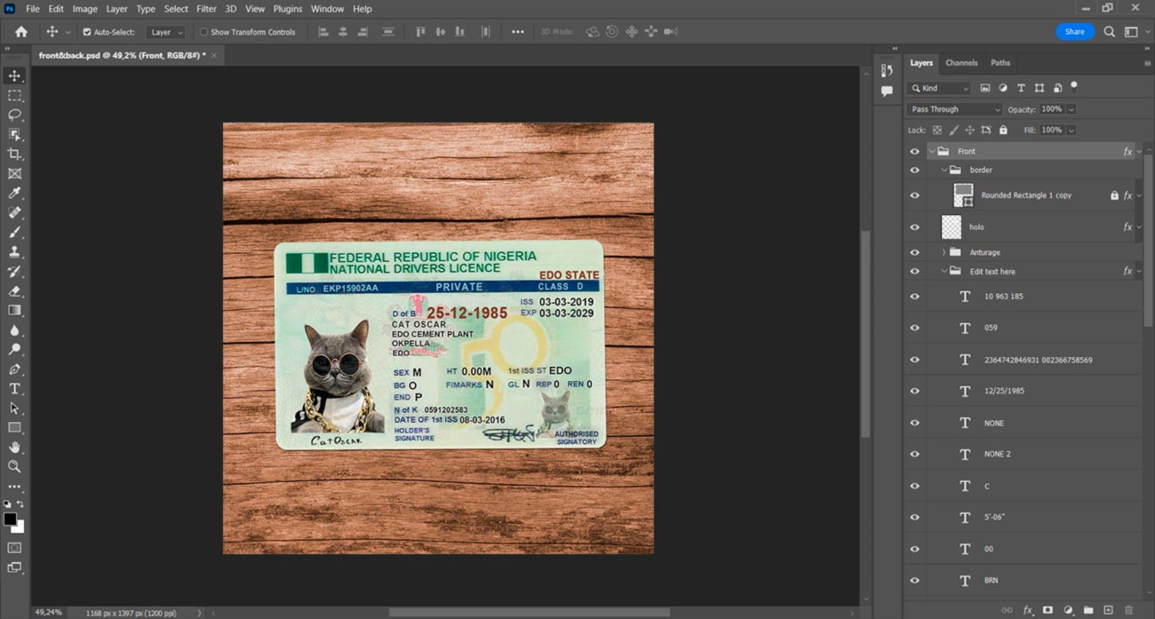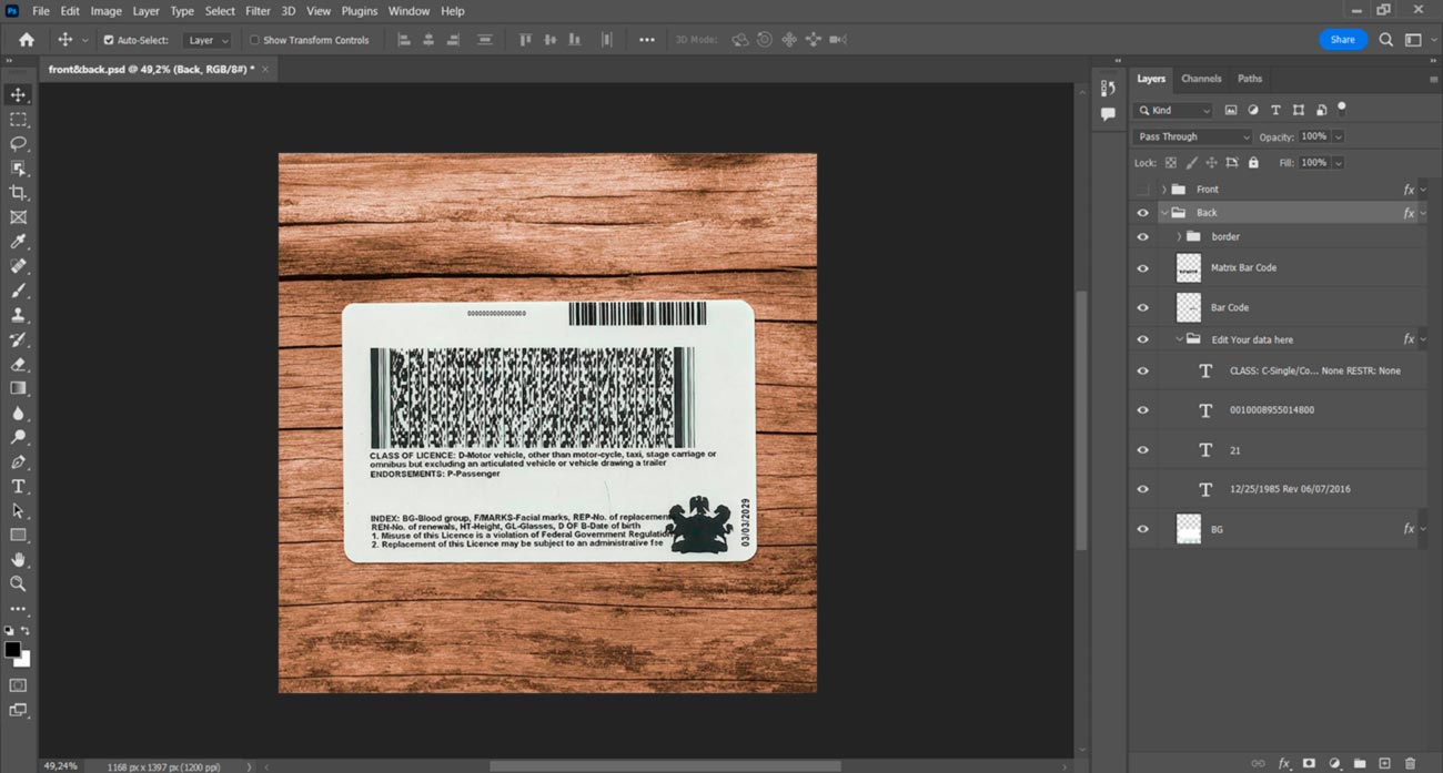 But if you don’t want to waste your time you can order: Create with my info. And you write us the information and send us a photo and we will make for you a high-quality photo with this template but with your information.