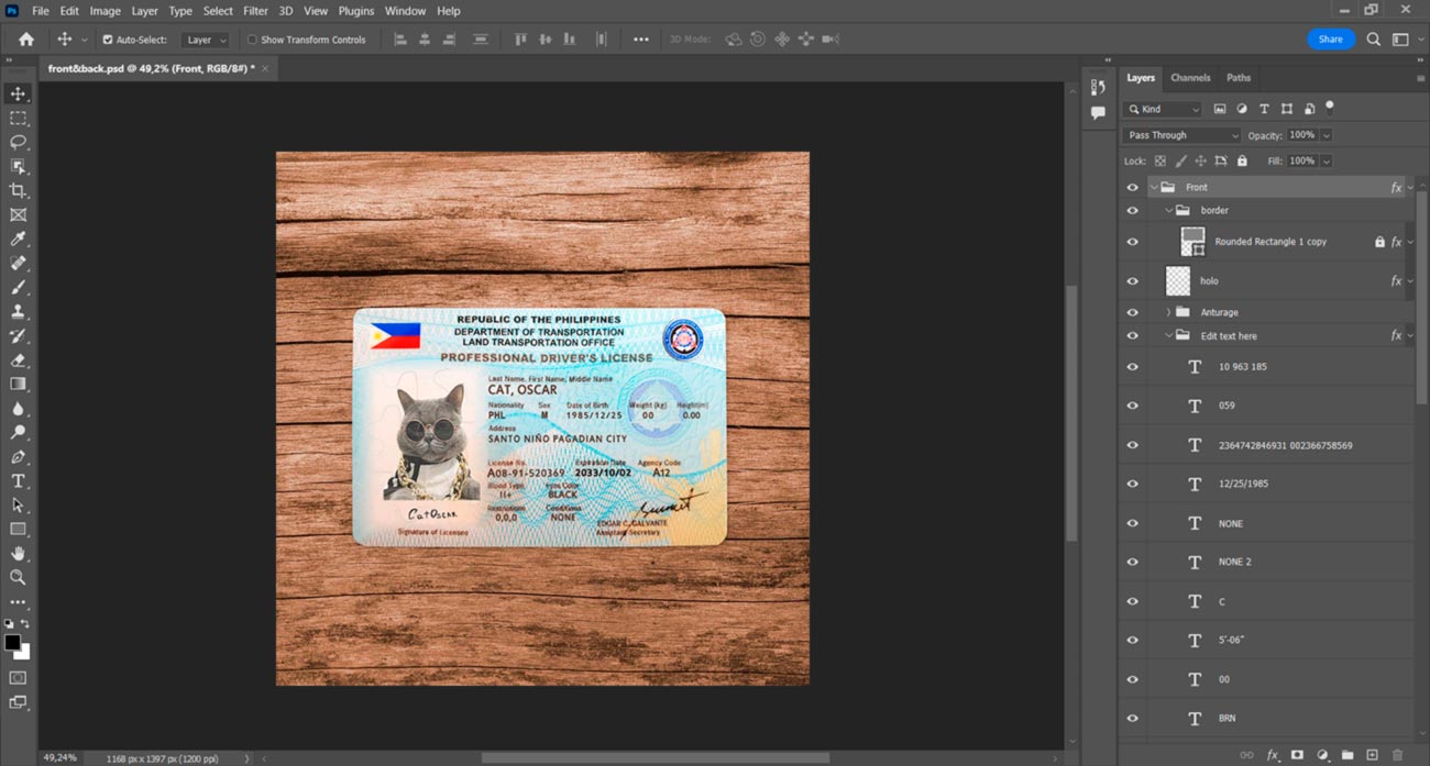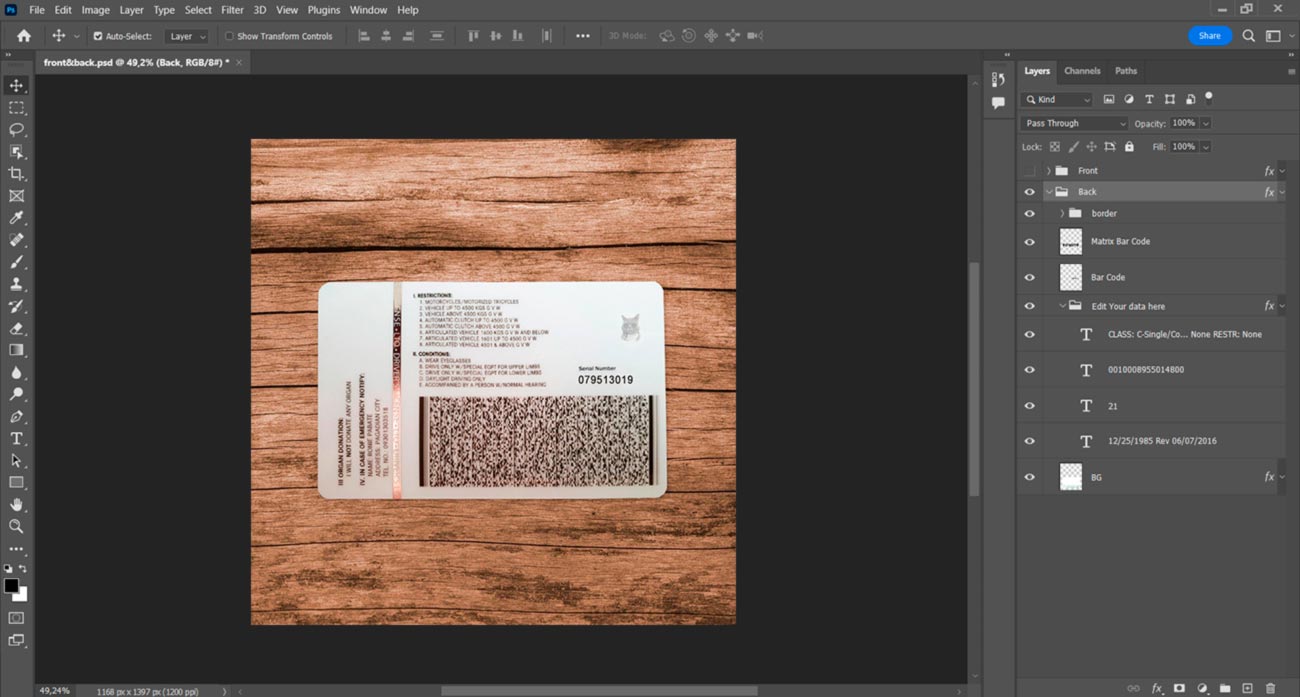 But if you don’t want to waste your time you can order: Create with my info. And you write us the information and send us a photo and we will make for you a high-quality photo with this template but with your information.