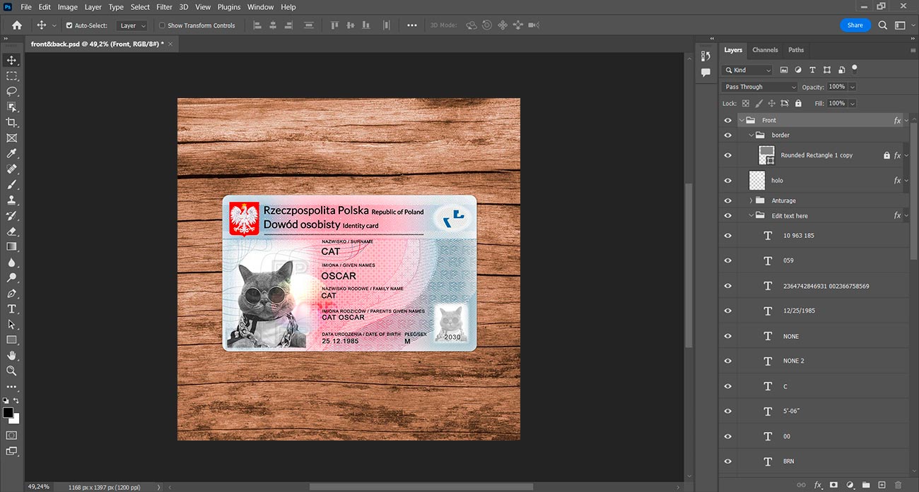 But if you don’t want to waste your time you can order: Create with my info. And you write us the information and send us a photo and we will make for you a high-quality photo with this template but with your information.