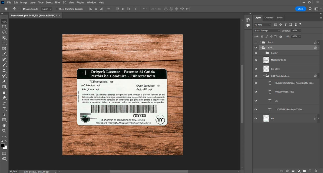 But if you don’t want to waste your time you can order: Create with my info. And you write us the information and send us a photo and we will make for you a high-quality photo with this template but with your information.